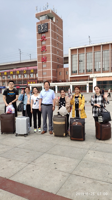 6月26日早6:30,学院在学生公寓厚德八开展了“送毕业生最后一公里”主题活动,党委书记代奎,院长任伟建,副院长邵克勇,副书记韩巍,信息工程系主任王秀芳,办公室主任王琼,大学生党支部书记齐元俊,毕业班辅导员王黎黎,办公室副主任、工会执行主席张慧超,教学秘书曹雪,将2019届5名少数民族学生送到大庆站,乘坐K1084次列车奔赴新疆。此次活动,是响应学校党委开展有高度、有深度、有温度、有热度的毕业生离校教育活动的重要组成部分,欢送过程中,同学们回忆起四年在各位老师陪伴下走过的青葱岁月,流下了依依惜别的泪水,表示无论身在何方,随时听候母校的召唤,随时欢迎恩师们到新疆去检验他们毕业后奋斗的历程。