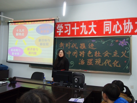 院党委邀请校十九大宣讲团成员荀明俐博士,为全院学生党员做《新时代推进中国特色社会治理现代化》专题报告。报告从推进有中国特色的社会治理现代化进程的总体要求、新时代开启社会治理现代化新征程的时代意义、当前我国社会治理现代化进程的发展与总体评价、新时代推进中国社会治理现代化进程的总体框架等四方面进行讲解,深入浅出、系统完整。通过讲解,师生对十九大报告中中国特色社会治理现代化有了进一步的学习理解。据悉这是电气院党委继11月30日院党委邀请人文科学学院院长为全体教师宣讲十九大报告后进行的又一场专家宣讲。