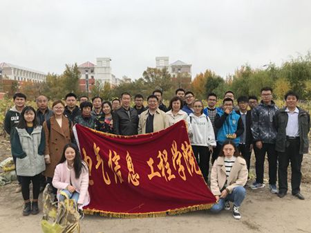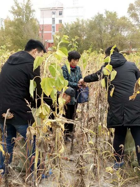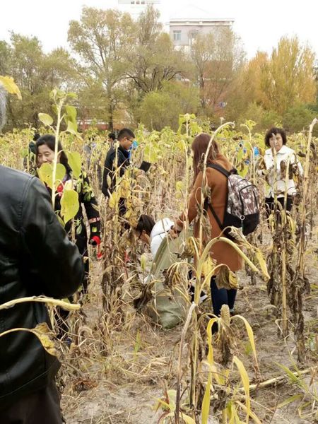 在喜迎党的十九大胜利召开和学校本科教学工作审核评估之际,我院教职工、学生代表在党委书记任伟建、院长高丙坤、副院长付光杰的带领下,齐聚“三宝田”,在我们自己的责任田里一起挥镰收割向日葵,一起分享丰收的喜悦。