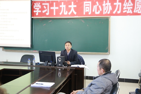 张文喜教授就十九大报告分五个方面给大家进行了解读,观点鲜明,案例生动,分析透彻。报告结束了,大家意犹未尽,大家纷纷表示,听了辅导,对党的十九大报告的内涵有了更深刻的理解,一定立足岗位,教书育人,在以习近平同志为核心的党中央的领导下为中国人民谋幸福、为中华民族谋复兴。