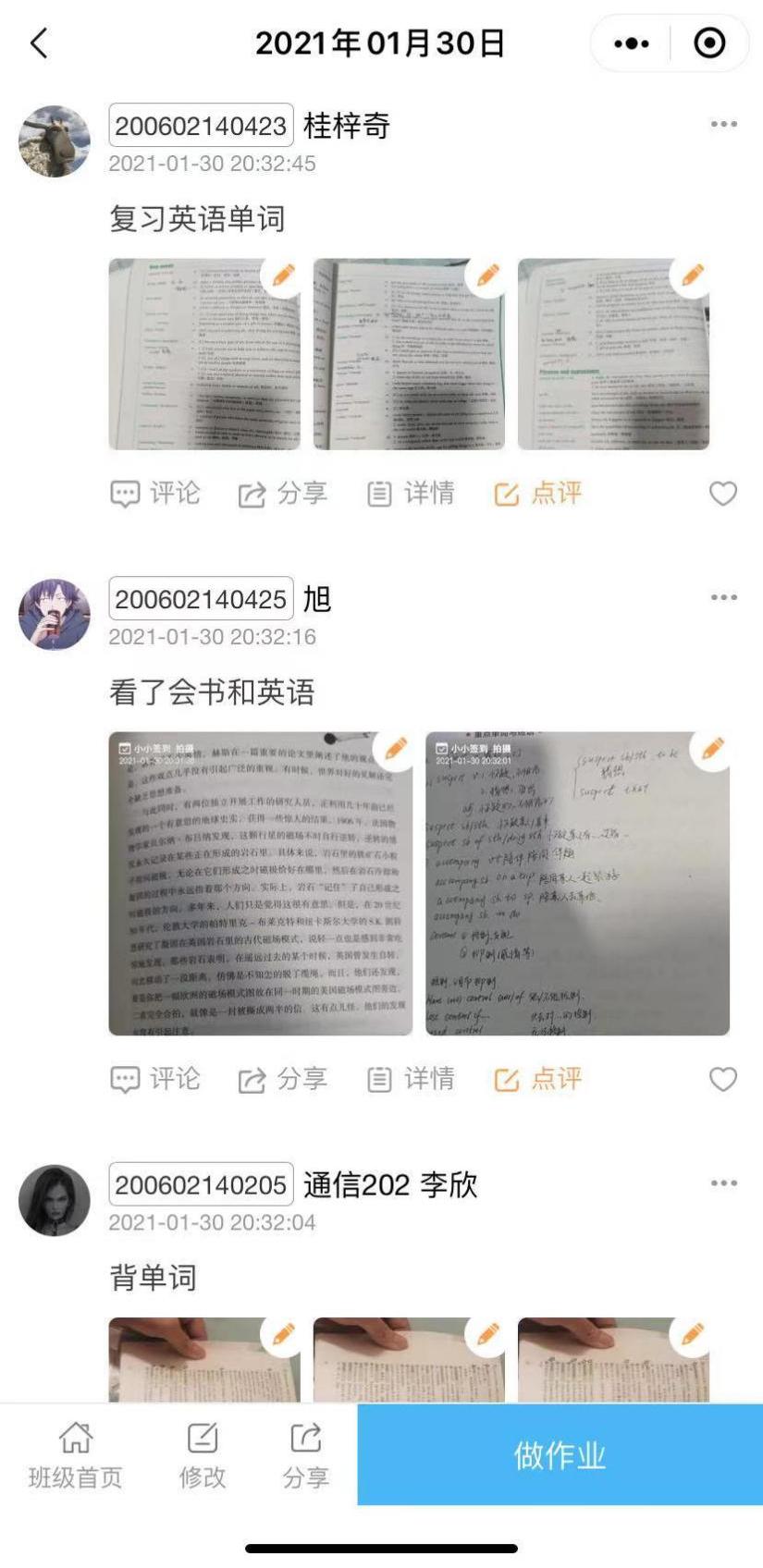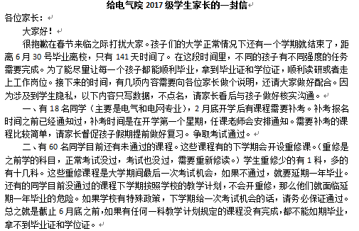 结合2020-2021上学期的期末成绩,我院辅导员制定“家校联系”学习帮扶计划。辅导员和学委结合班级整体的成绩、学风建设,为各班有不及格课程的学生做好补习计划,并由学委告知学生本人,在寒假遵照补习计划,合理安排学习时间,分享班级成绩较好同学的笔记,共享网课资源。辅导员结合学业预警名单,通过微信与家长联系,检查学习帮扶计划的落实情况,和家长假期共同督学。