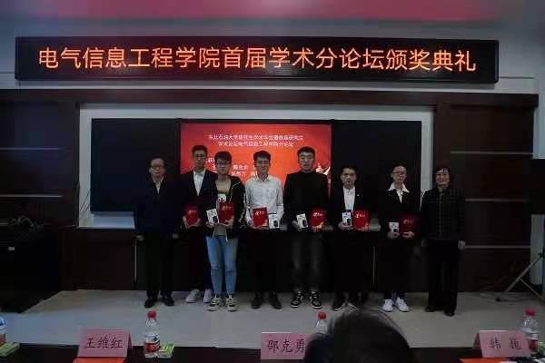 徐建军副院长首先对电气分论坛进行了介绍,经过三个月的激烈角逐和专家严格评审,我院共有18名同学脱颖而出,院领导和嘉宾为获奖选手颁发证书及奖品。