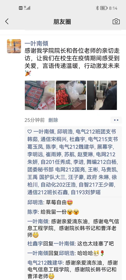 学院领导的亲切关怀让同学们感到了温暖,并表示在特殊时期也要保持积极的心态投入到学习和生活中,并将这种温暖继续传递,服务社会、报效祖国,不辜负学校和父母的期望。