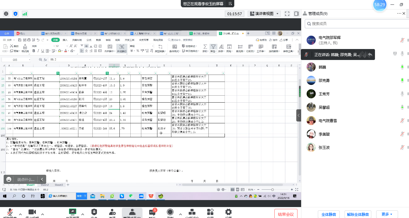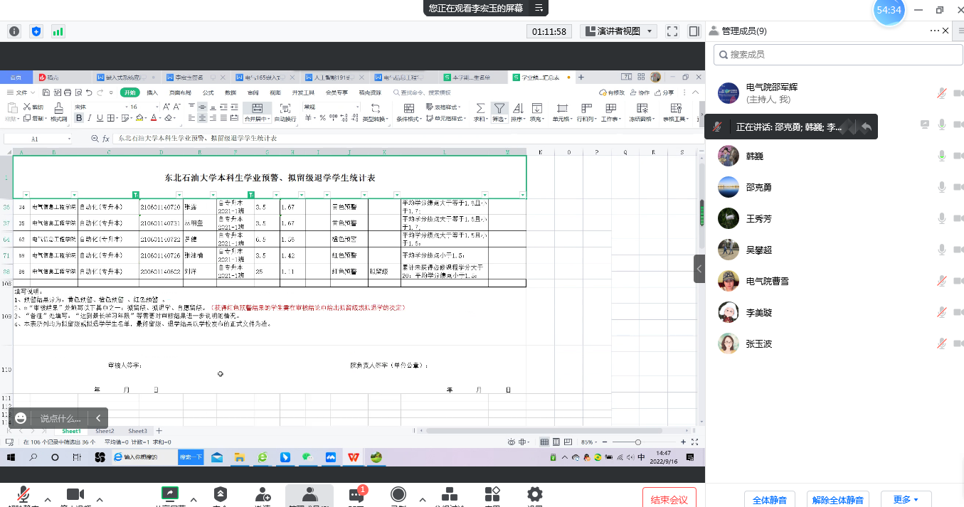 王秀芳首先介绍了我院学生2022年度本科生学业预警情况,并指出:教师备课、上课是“教书”,而关爱帮助学业有困难的学生则是“育人”的一种体现。韩巍从学业帮扶与学生理想信念教育、与关心关爱学生、与学风建设关系、如何融入太阳集团、教学与管理协同、一流专业和专业认证的必然要求、学院影响力和师生情感延续等方面,就开展学生帮扶工作给出建议。各位教学主任从专业层面对如何开展公工作提出了自己的思考,并展开了交流与研讨。