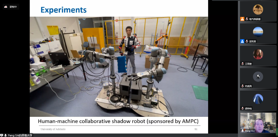 10月2日,澳大利亚阿德莱德大学电气与电子工程学院教授,高级无人系统实验室主任石碰教授应学院邀请,通过腾讯会议以线上的形式为我院做《Consensus and Formation Control for Multi-agent Systems》的专题讲座暨2007so太阳集团学术月第二讲。院长邵克勇主持,电气院师生共计140余人参会交流、研讨。