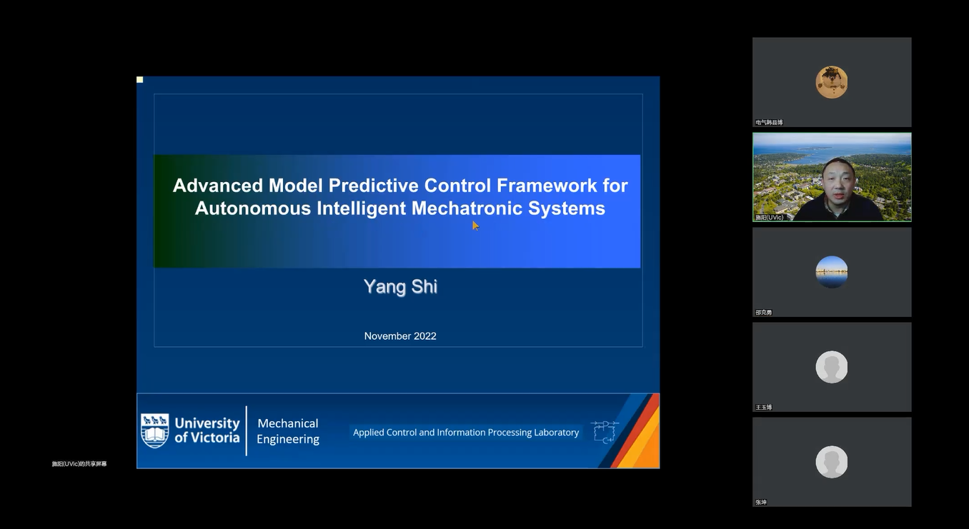 10月9日,加拿大维多利亚大学机械工程系教授施阳博士应学院邀请,通过腾讯会议在线上为我院做《Advanced Model Predictive Control (MPC) Framework for Autonomous Intelligent Systems》的专题讲座暨2007so太阳集团学术月第三讲。本次讲座由院长邵克勇主持,电气院师生共计100余人参会交流、研讨。