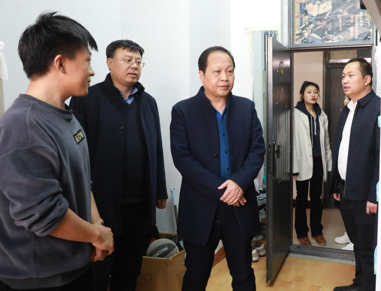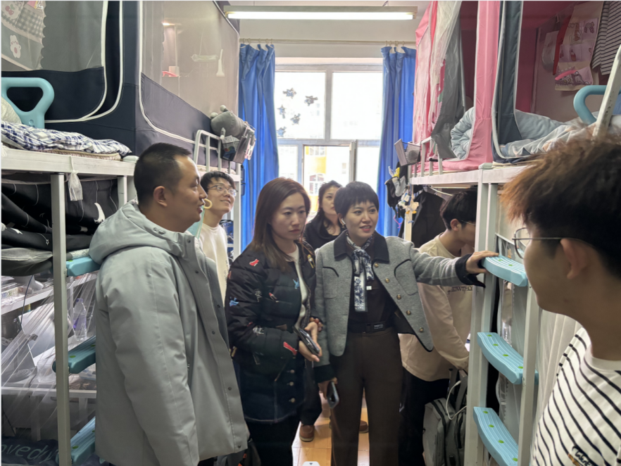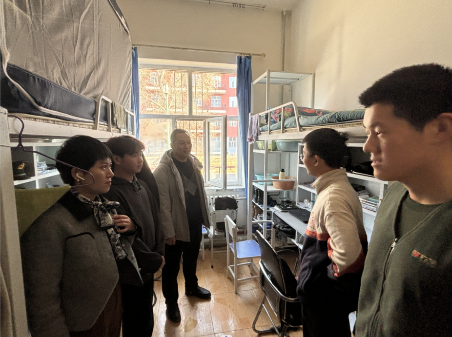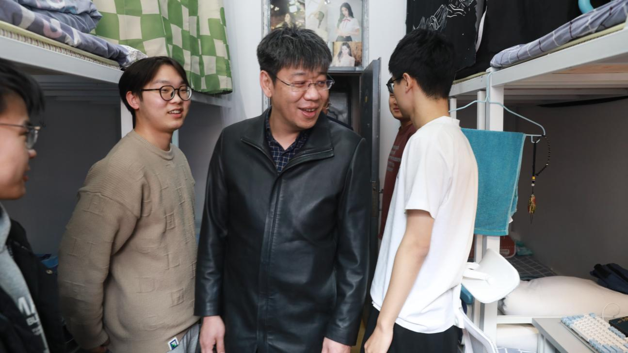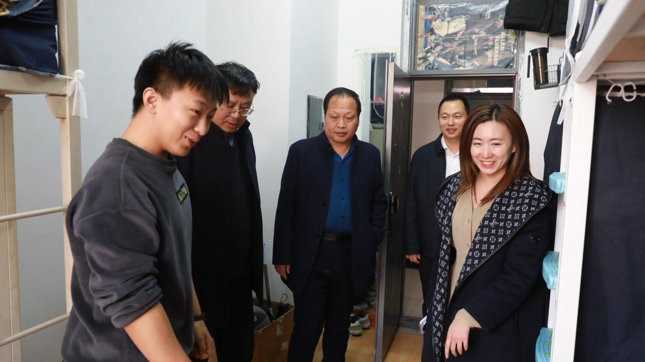 在宿舍,韩巍、邵克勇与学生进行了交流,询问学生学习、生活方面的困难,为学生送去关怀和问候,希望同学们珍惜良好学习环境,努力学习,增强本领,立志成为国家栋梁。
