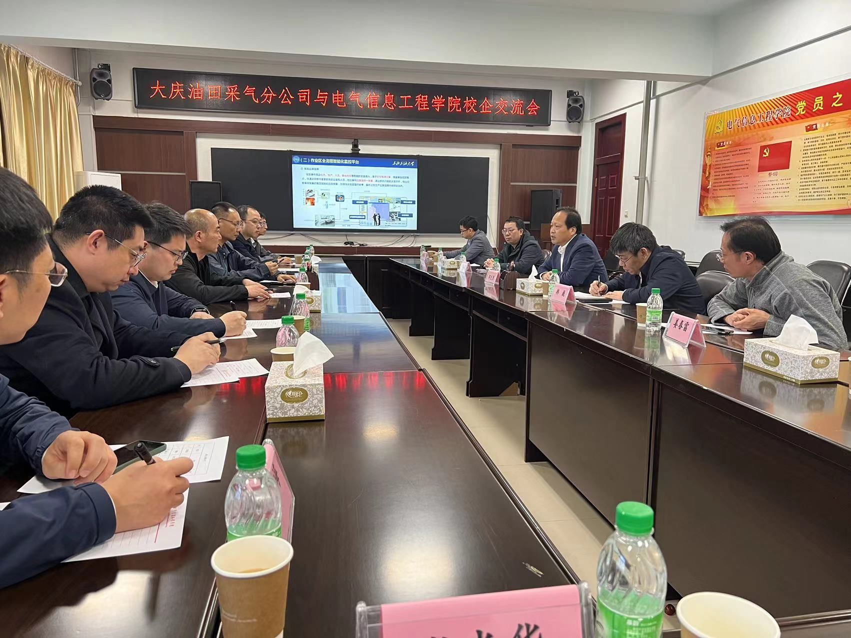 4月19日,大庆油田采气分公司来院开展校企交流活动,采气分公司气田管理部主任(校友)张海龙带队一行8人到访,学院相关领导和科研技术人员参与交流座谈。