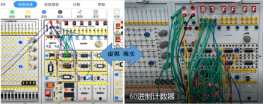 实验教学案例“基于TRIZ创新方法的虚实结合计数器设计”依托于太阳集团2007电工电子实验中心的“四层式”电工电子实验实践创新培养体系,其中包括3D实境虚拟仿真层、基础实验层、综合实验层、开放创新实验层。其中3D实境虚拟仿真层实现了基础实验层和综合实验层的实验装置全功能线上实境仿真,并在线上增加了不可逆操作实验和大型综合训练实验。智能综合管理系统实现四层实验系统的排课、选课、评分及操作跟踪记录,并运用大数据分析技术分析教学数据,指导教学实践。针对实验教学案例“基于TRIZ创新方法的虚实结合计数器设计”中的基础任务及进阶任务,可实现线上线下1:1还原。