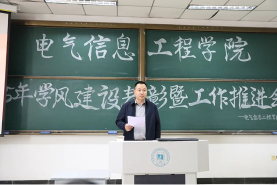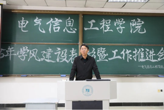 院长邵克勇在致辞时表示,学风,是一所大学的灵魂,是学校学院生存与发展的根本支柱,良好的学风是学院的宝贵财富,他从加强思想引领,坚定理想信念;强化教风建设,提高教学质量;完善制度建设,加强学风管理;丰富校园文化活动,营造良好学习氛围;加强学生自我管理,发挥主体作用等五个方面要求全院师生加强学风建设,通过优化课程、创新教法、强化实践等举措,搭建优质学习平台,鼓励教师用心育人,引导学生明确目标、提升素养、为学院高质量发展贡献力量。