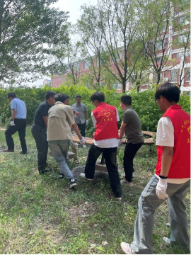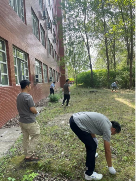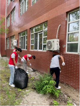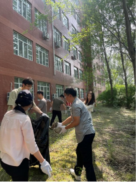 清理活动开始前,参加清扫的师生先领取了防护手套、垃圾夹、黑色塑料袋等清理工具。随后,参与活动的师生便立即投身到责任区的清理当中。有人搬起砖头,有人捡起树枝,有人将拾起的白色垃圾和杂草装入黑色塑料袋内,在碎石与尘土覆盖的墙角下,也有人为了高效清理而不遗余力地举起铁锹,将劳动的汗水挥洒在校园的角落里,也将对学校与学院的爱传递到每一个行于这片土地之上的师生心中。