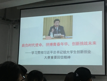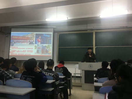 活动中,团委书记韩巍从党的第一次全国代表会到第十八次全国代表大会的召召开背景、会议主题、历史任务入手,为同学们详细介绍了我们的国家在中国共产党的领导下,回顾了从一大以来到现在所取得的各项成就。接下来,韩巍向同学们明确:十九大是在我国全面建成小康社会决胜阶段,中国特色社会主义发展关键时期召开的一次十分重要的大会。他从“新时代”等十个关键词入手,结合四十个学习要点,讲解了大会主题:不忘初心,牢记使命,高举中国特色社会主义伟大旗帜,决胜全面建成小康社会,夺取新时代中国特色社会主义伟大胜利,为实现中华民族伟大复兴的中国梦不懈奋斗。中国共产党人的初心和使命:就是为中国人民谋幸福,为中华民族谋复兴。