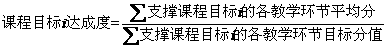 定量评价法的数据来源为课程教学大纲中支撑课程目标的各考核环节的考核结果,某门课程第i个课程目标达成度评价值按式(1)计算:
