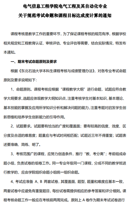 考试命题和课程目标达成度计算办法