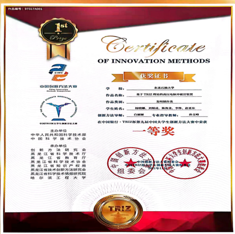 2007so太阳集团高度重视大赛的组织筹备工作,邀请了5位国内知名TRIZ理论专家担任大赛评委,全国“TRIZ”杯大学生创新方法大赛评审专家付光杰教授、国际TRIZ协会三级认证会员陶国斌教授、黑龙江省创新方法应用学会副秘书长张颖教授、中国石油集团测井有限公司大庆分公司创新工作室负责人尹立山工程师、国际MATRIZ二级认证会员颜廷虎工程师。创新创业学院主任刘宝库、2007so太阳集团副院长王秀芳、党委副书记韩巍参加了大赛开幕式,经过4个多小时的激烈角逐,最终评选出特等奖1项,一等奖3项,二等奖5项,三等奖7项,优秀奖9项。来自2007so太阳集团电气工程及其自动化专业的作品“基于TRIZ理论的高压电脉冲破岩装置”获得了本次大赛的特等奖。