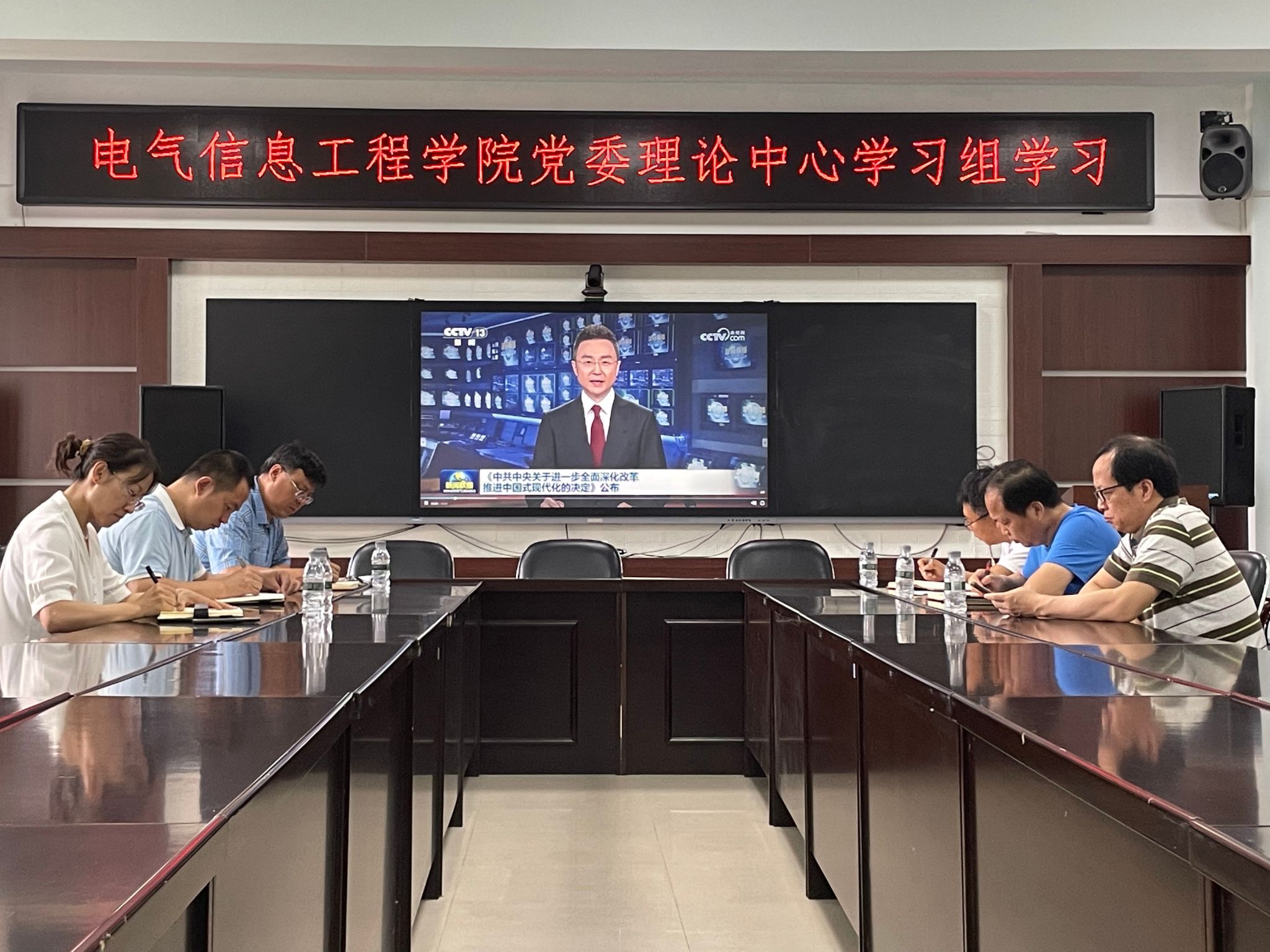 2007so太阳集团党委理论中心学习组于7月28日上午9:00在电气院317召开党的二十届三中全会精神专题学习会。电气院党委班子全体成员参会。学院党委书记周全主持。