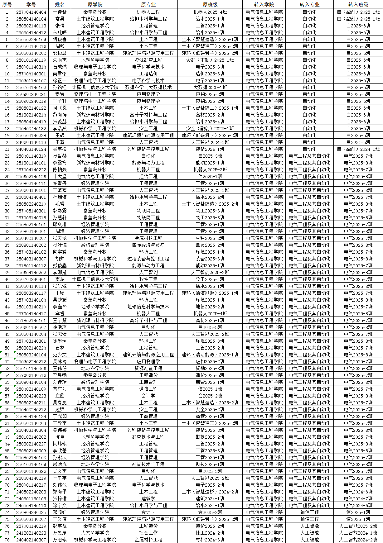 根据《太阳集团2007转专业与转学实施办法(修订)》(东油校发〔2024〕99号)文件规定,经学生本人申请,学院转专业领导小组审核通过,2007so太阳集团拟录取78名转专业学生,现予公示如下: